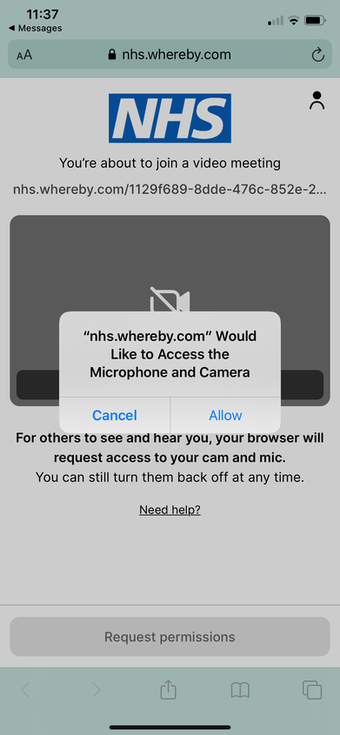 This allows you browser access to your microphone and camera (this is because most phones are set up not to allow access to phone camera and microphone and both of these need to be enabled to allow you to conduct the video consultation).